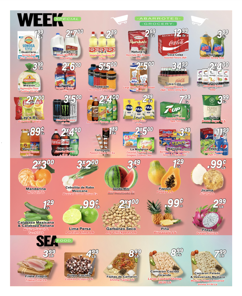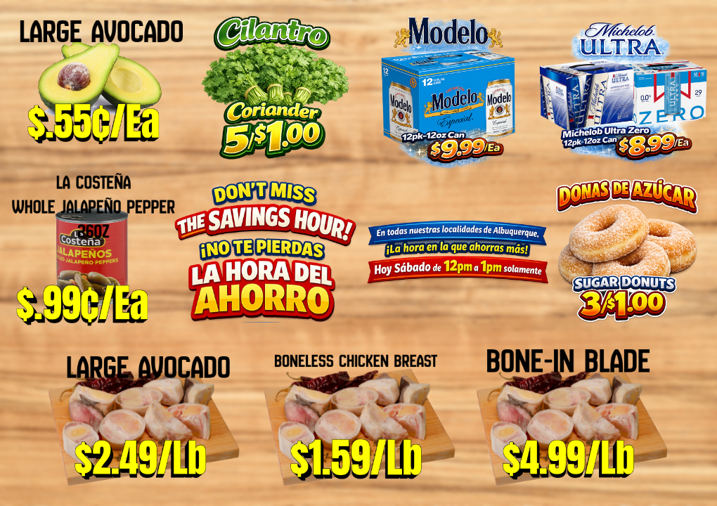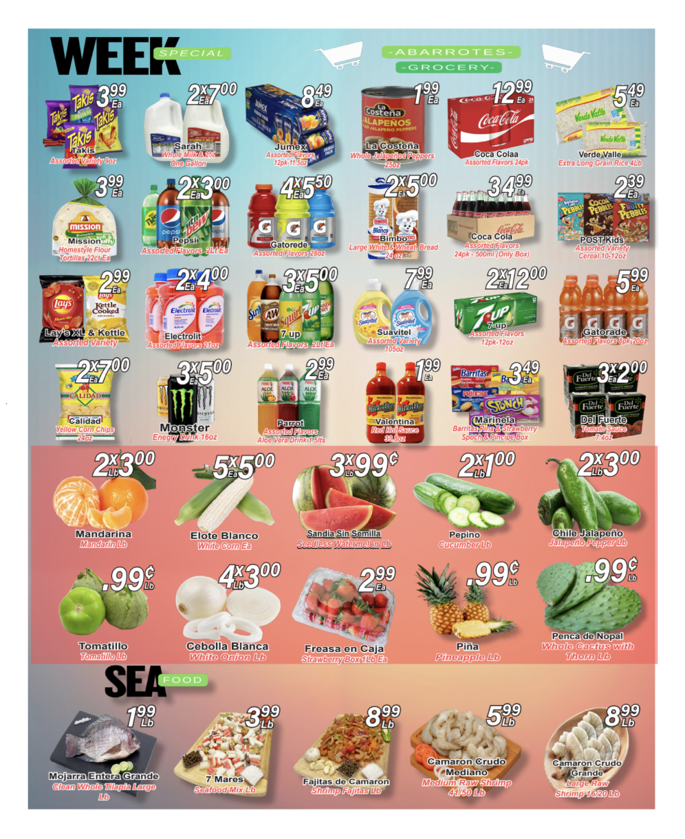 When you visit our Delicatessen area you’ll find the best quality in cheese, ham, bologna and you have to try our homestyle hot sauces & Guacamole !!