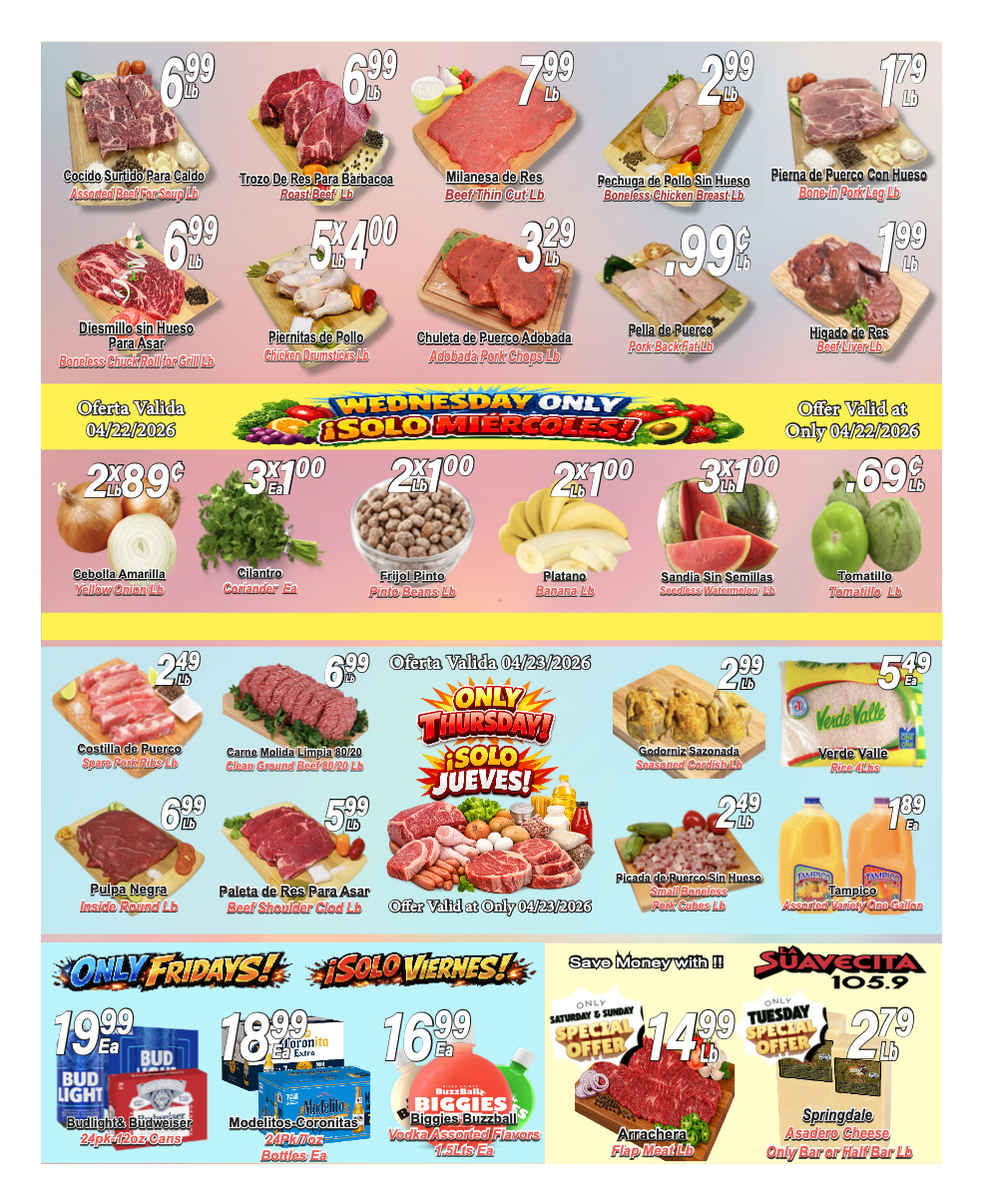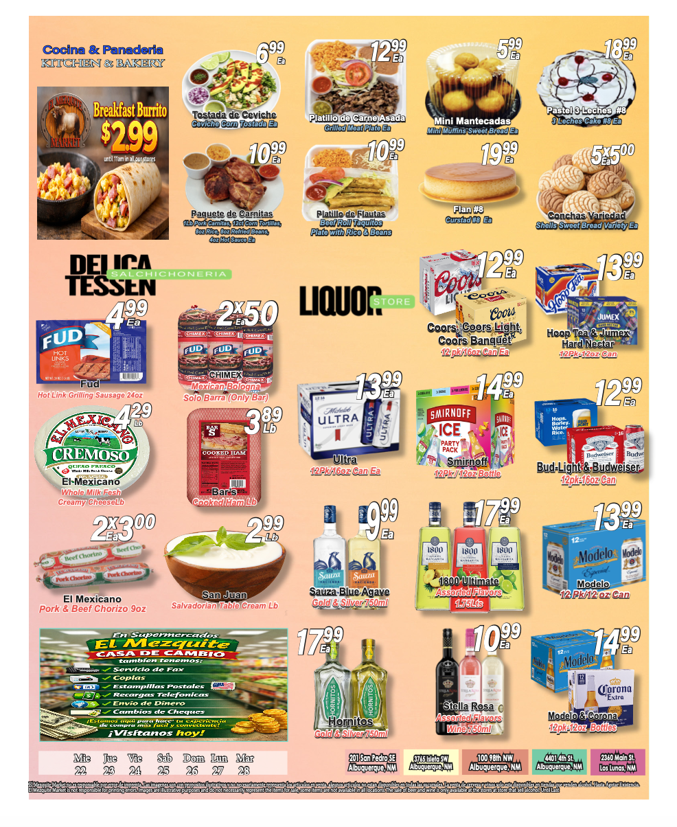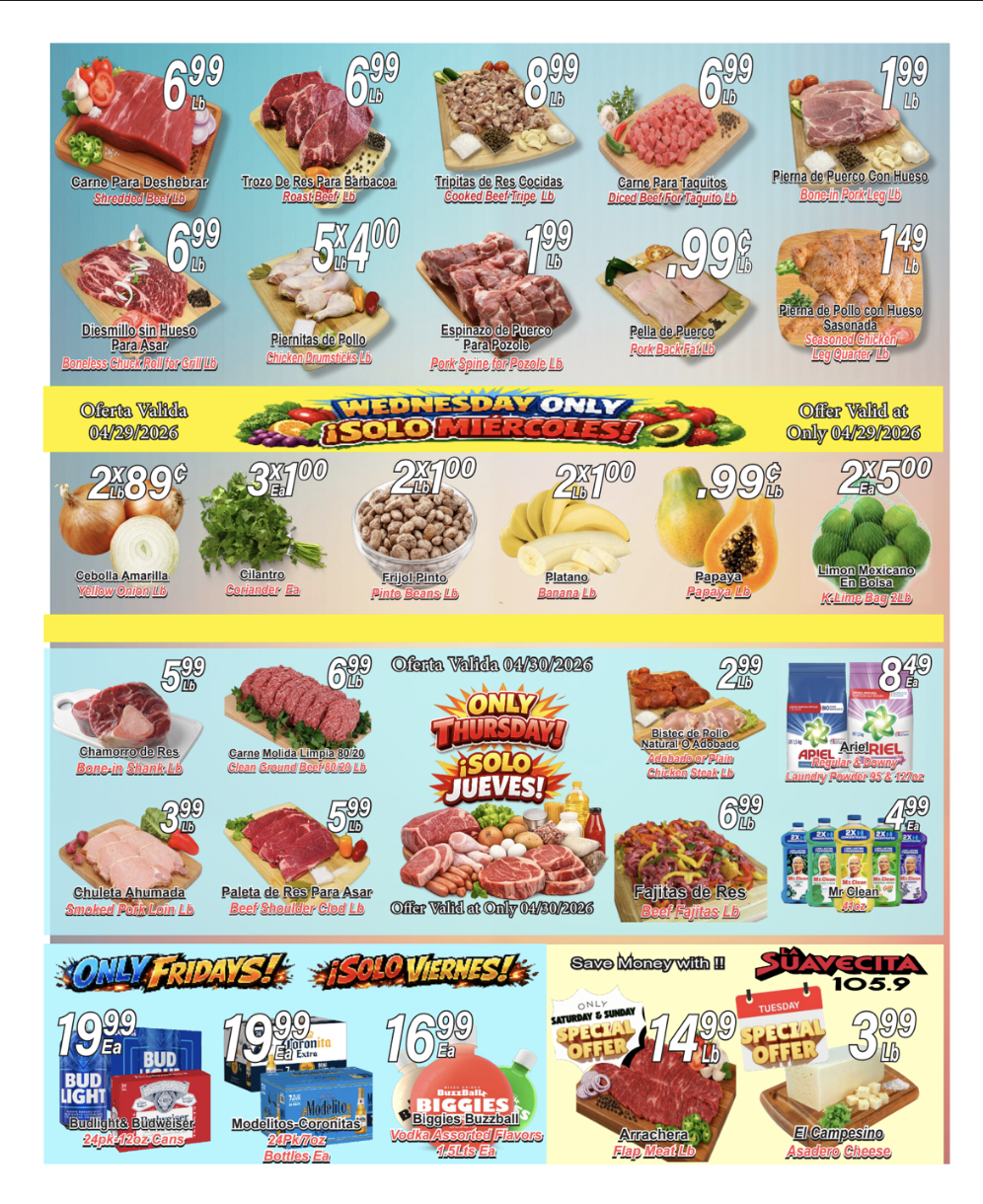 When you visit our Delicatessen area you’ll find the best quality in cheese, ham, bologna and you have to try our homestyle hot sauces & Guacamole !!