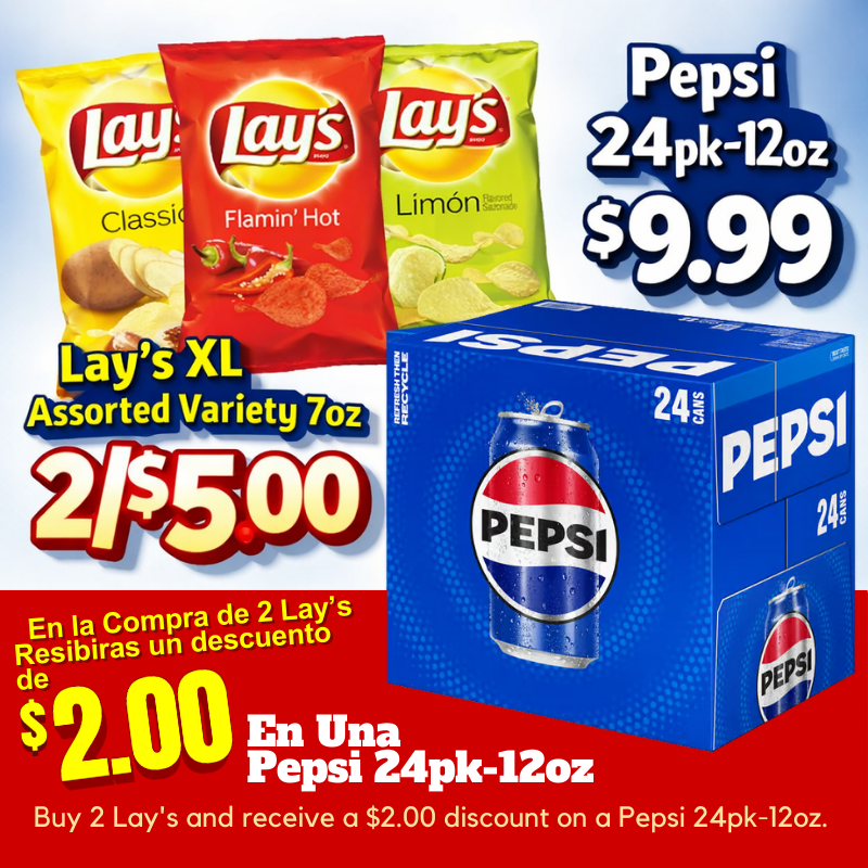 Buy 2 Lay's and receive a $2.00 discount on a Pepsi 24pk-12oz.