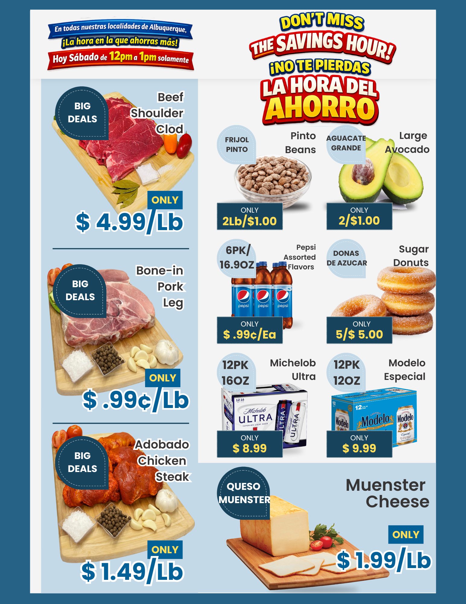 Available at ALL Albuquerque locations of El Mezquite Market One hour. Big savings. Don’t be late!